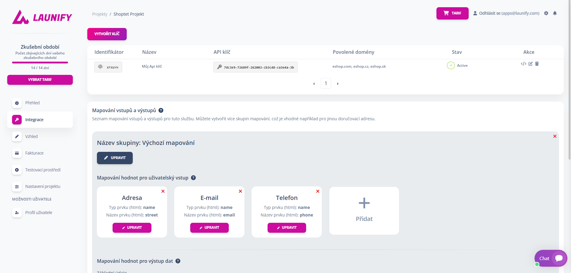 Instalace zabere méně než 5 minut a automaticky se aktivuje 14denní trial verze zdarma. Poté budete e-mailem upozornění na vypršení zkušebního období a vyberete si tarif.