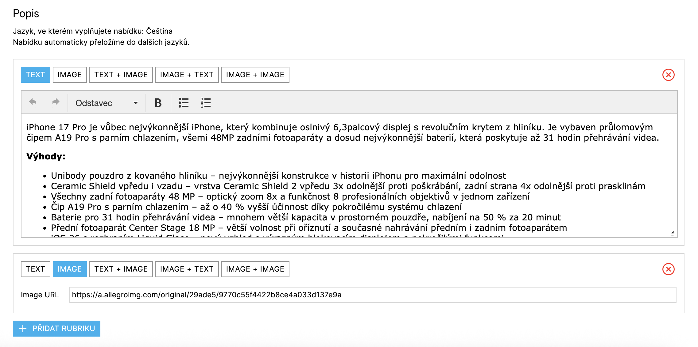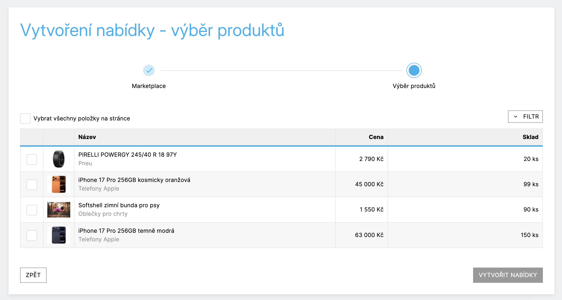 Nabídky jednoduše vytváříte z existujících produktů v e-shopu. Služba umožňuje:
