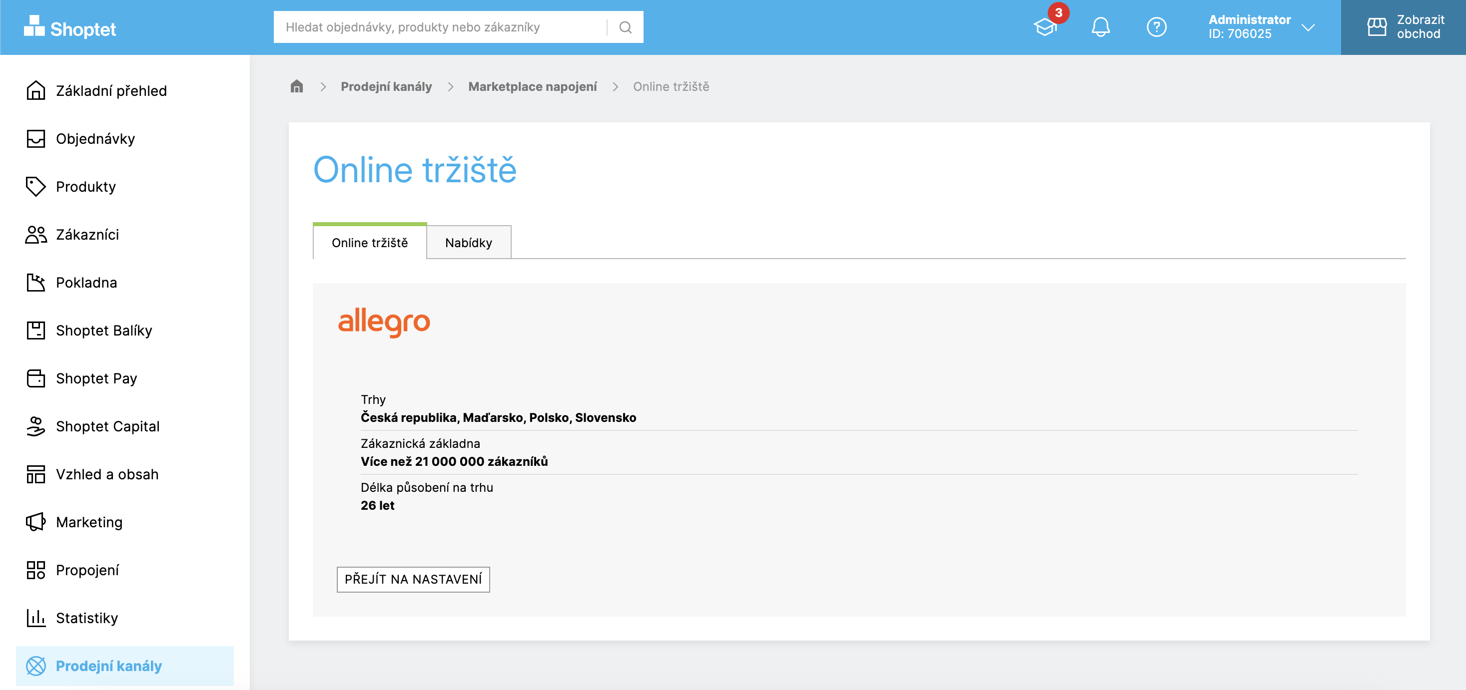 Snadno. Marketplace Napojení najdete přímo v administraci e-shopu v sekci Prodejní kanály. Po potvrzení základních údajů službu aktivujete během několika minut.