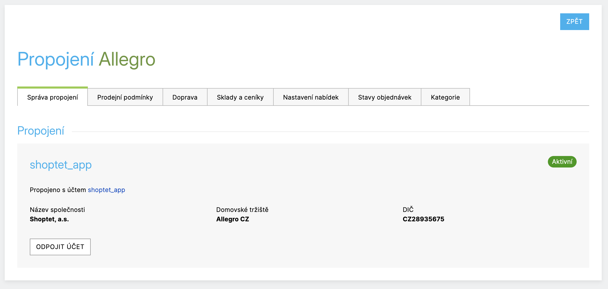 Poté si vyberete cílový marketplace, přihlásíte se nebo si vytvoříte účet a provedete autorizaci propojení se svým e-shopem. Spuštění prodeje se řídí podmínkami vybraného marketplace.