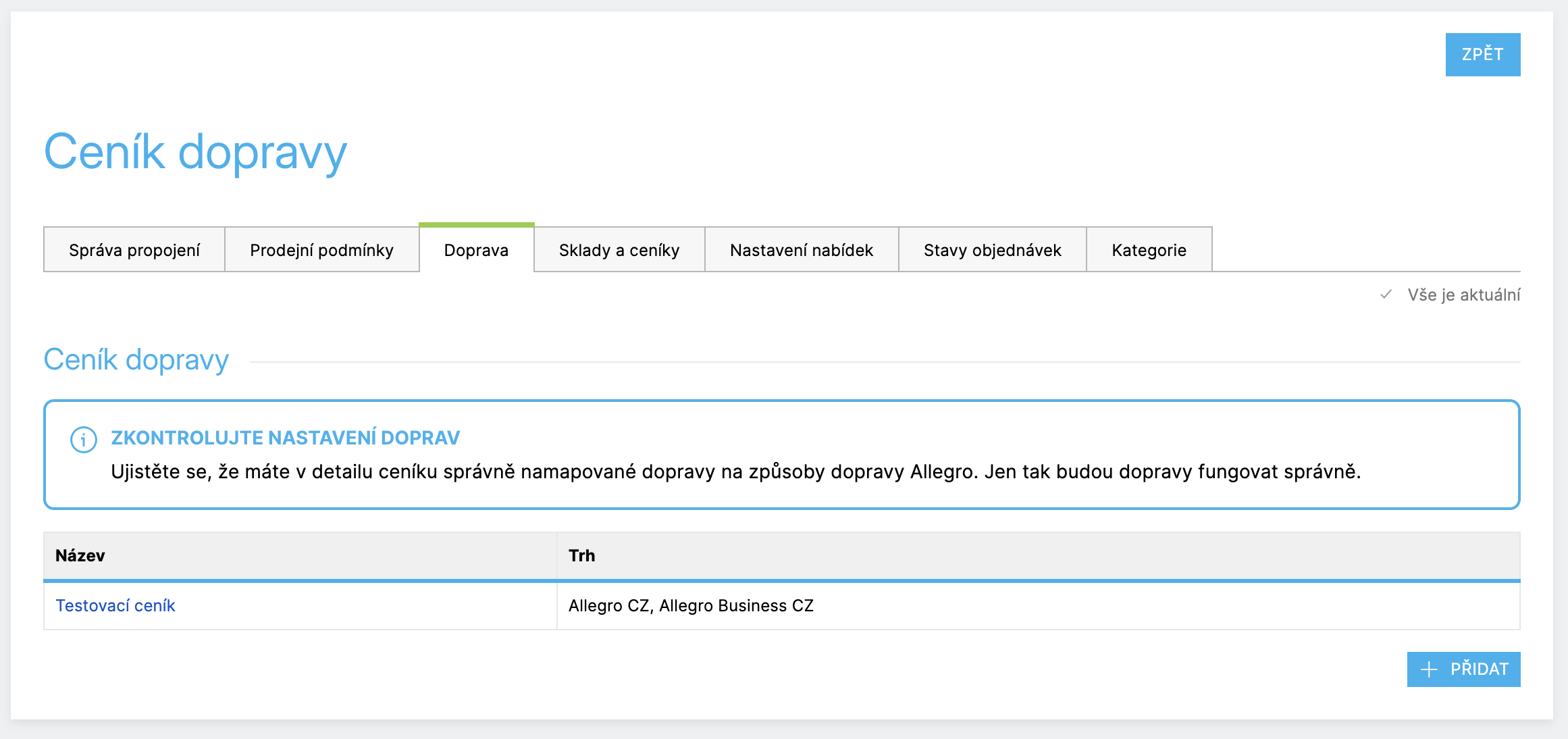 V administraci vidíte aktivní i neaktivní nabídky, případná upozornění a stav napojení jednotlivých marketplaces. Vše spravujete z jednoho místa bez nutnosti využívat externí nástroje nebo řešit technicky náročné propojení.