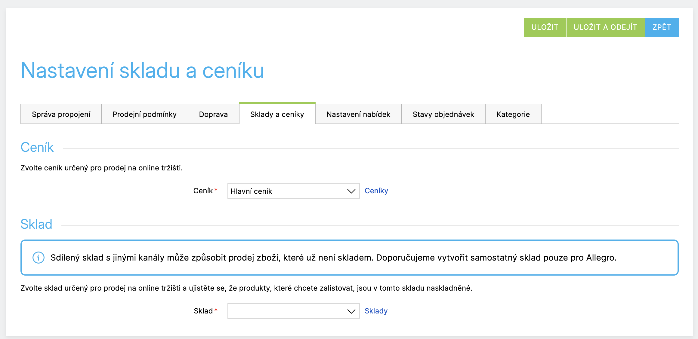 Synchronizace ceny a skladu
