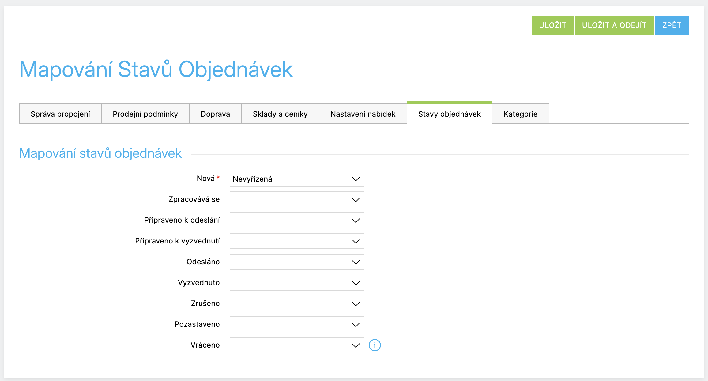 - Mapování stavů objednávek mezi Shoptetem a marketplace