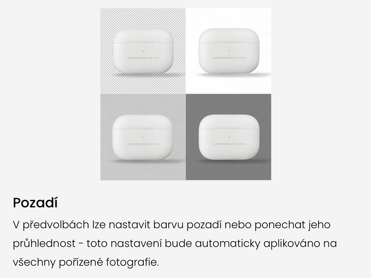 - Možnost přidat realistický AI stín pro lepší prezentaci produktu
