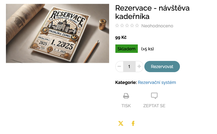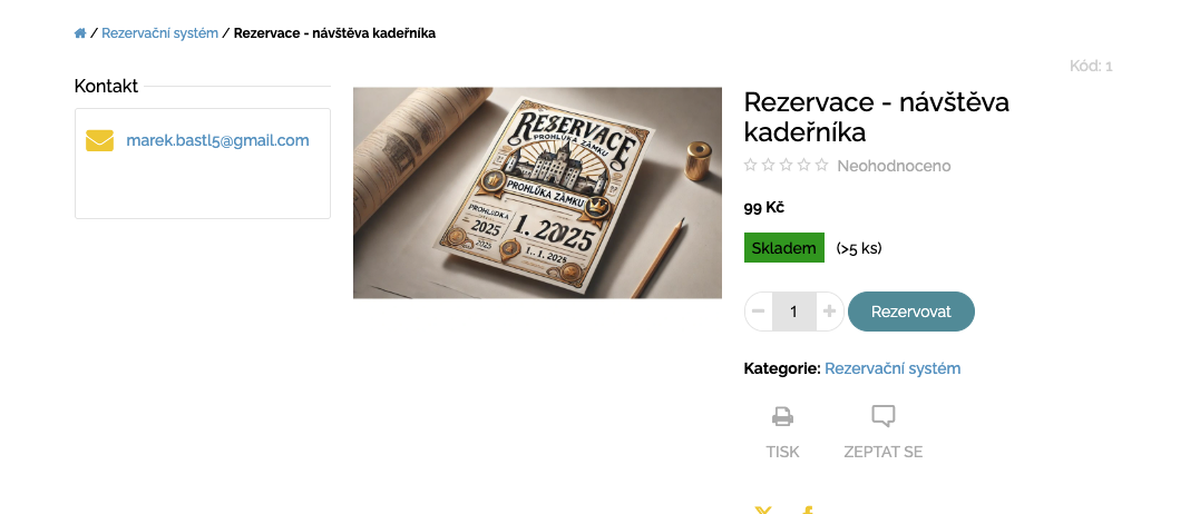 - Košík: 1 kus = 1 rezervace