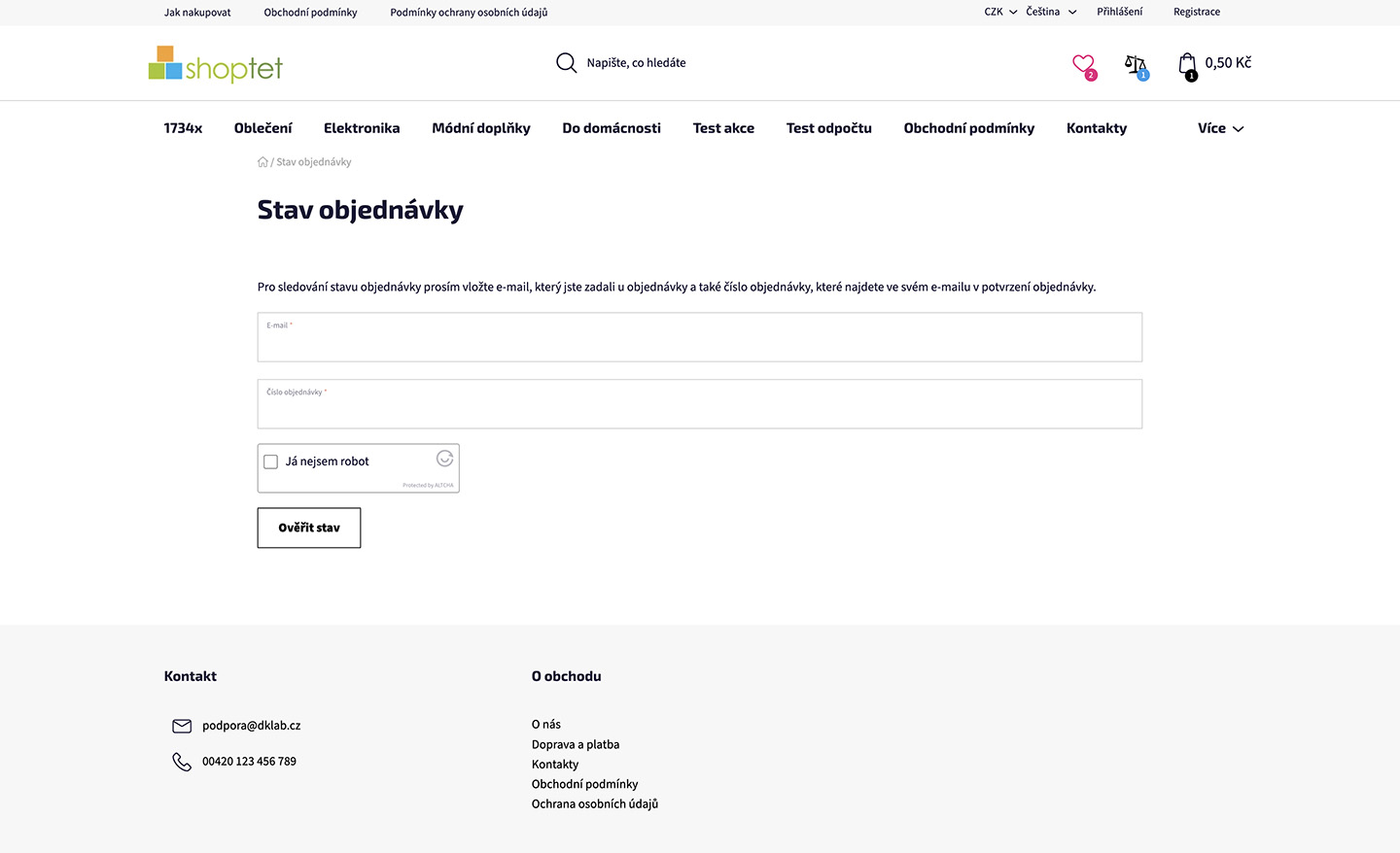 - Doplněk umožní vašim zákazníkům ověřit stav objednávky i bez registrace, stačí zadat e-mail a číslo objednávky