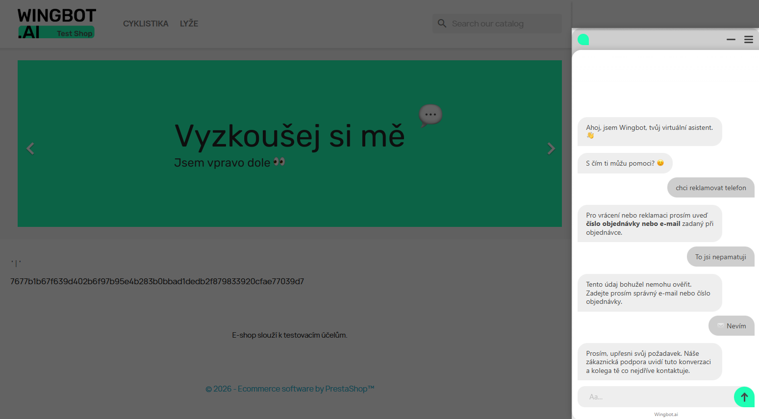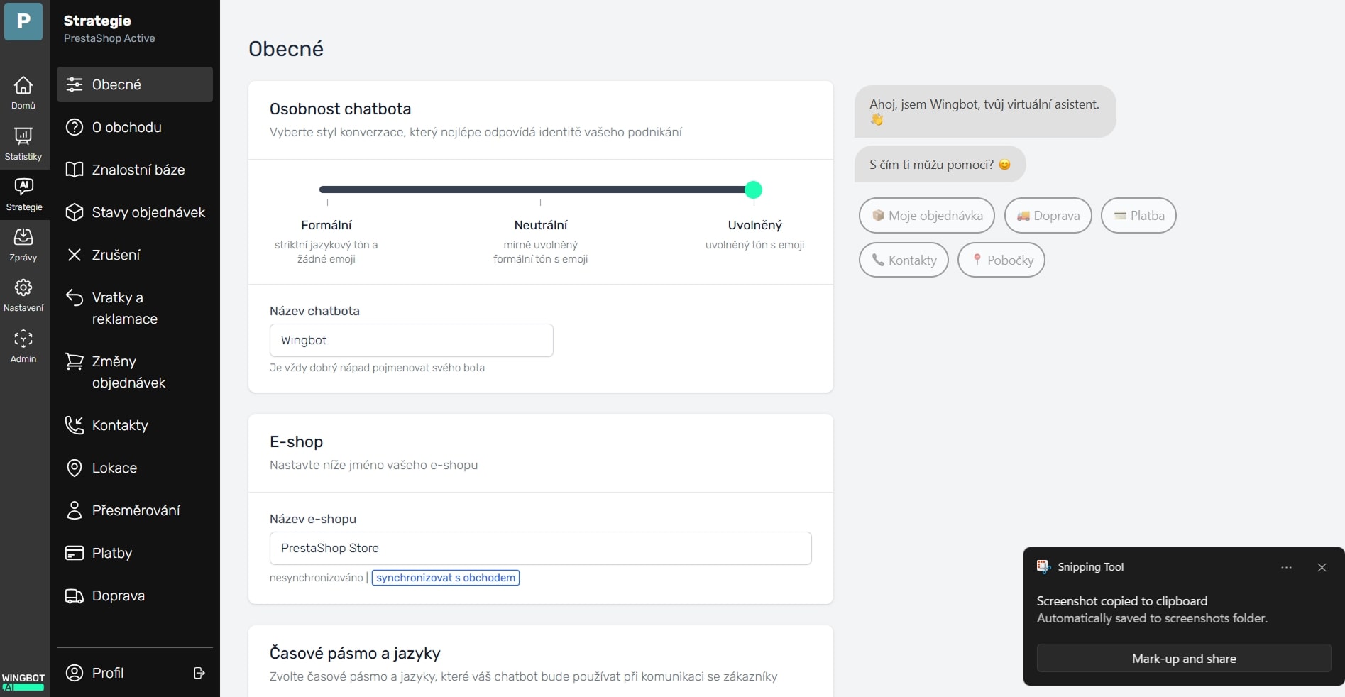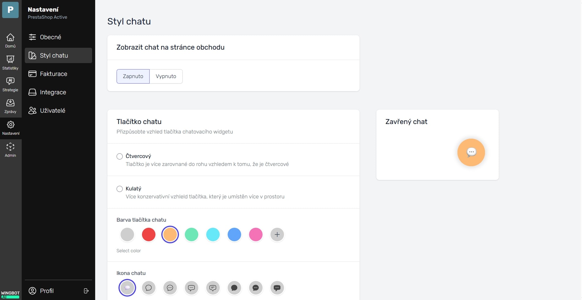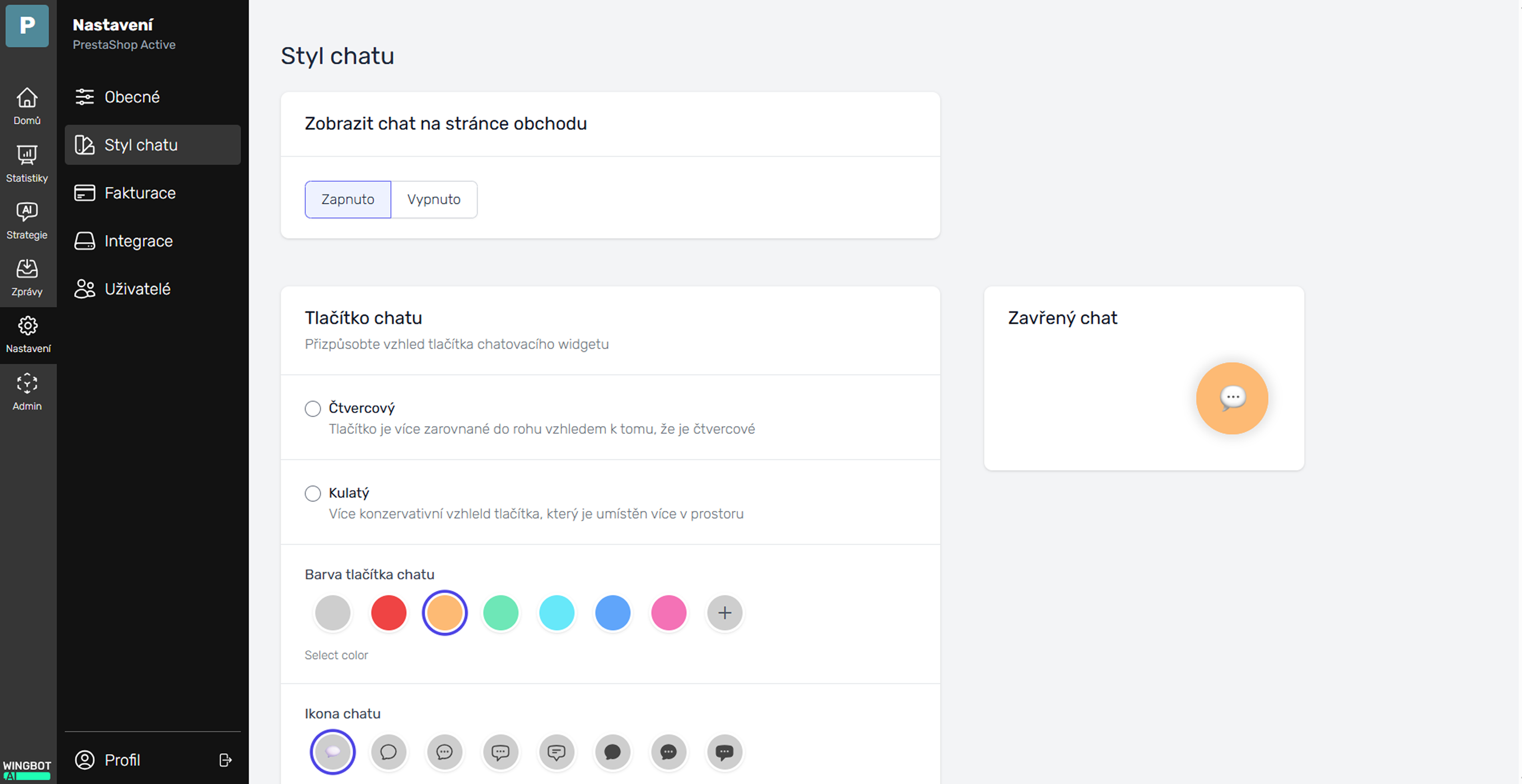(chatbota nezapoměňte zapnout v záložce Nastavení / Styl chatu)